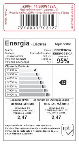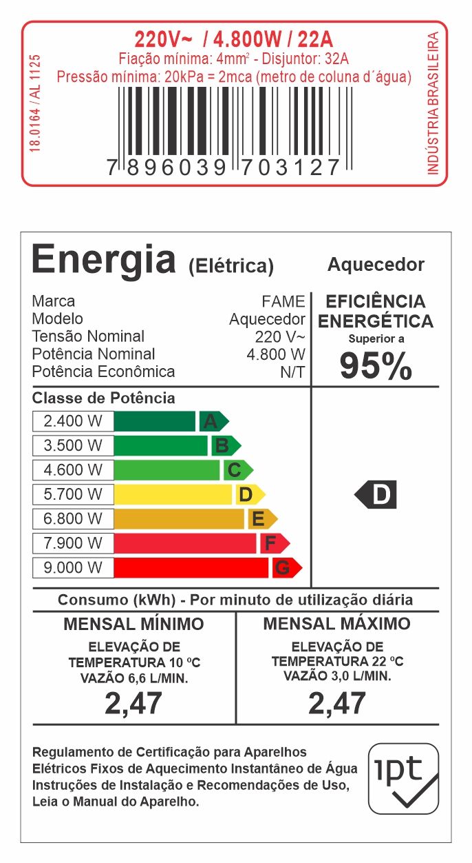 A FAME LTDA garante este produto contra eventuais defeitos de fabricação pelo prazo de 12 meses para o aparelho e 90 dias para a Resistência, contados e comprovados pela data de emissão do comprovante fiscal de venda ao consumidor.