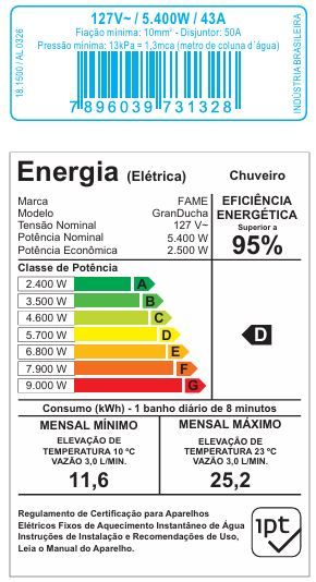 Compatível com dispositivo DR em qualquer condição de água: De normal a salobra (>1300Ωcm). Sua segurança depende de um aterramento adequado e você fica ainda mais seguro complementando sua instalação com o Dispositivo DR instalado no circuito elétrico, ambos previstos na NBR 5410.