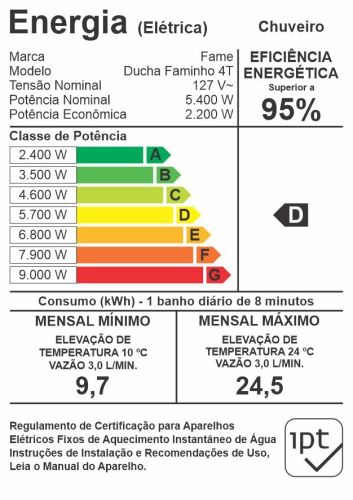 (*) Para distâncias maiores consulte um profissional habilitado. Quando ocorrer variação na tensão (voltagem) também ocorrerá variação na temperatura da água. O circuito elétrico deverá ter também o condutor de aterramento com impedância máxima de 2 (ohms), o qual deverá ser conectado ao condutor verde da Ducha Faminho, para garantir a proteção do usuário.