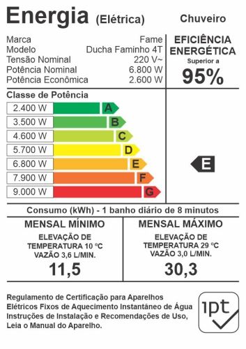(*) Para distâncias maiores consulte um profissional habilitado. Quando ocorrer variação na tensão (voltagem) também ocorrerá variação na temperatura da água. O circuito elétrico deverá ter também o condutor de aterramento com impedância máxima de 2 (ohms), o qual deverá ser conectado ao condutor verde-amarelo da Ducha Faminho, para garantir a proteção do usuário.