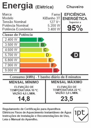Nesta posição a KiBanho 3T tem em média 49% de Economia de Energia Elétrica