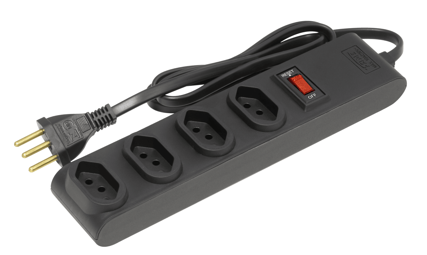- Permite a conexão de 1 a 4 equipamentos com plugue 2P+T simultaneamente.