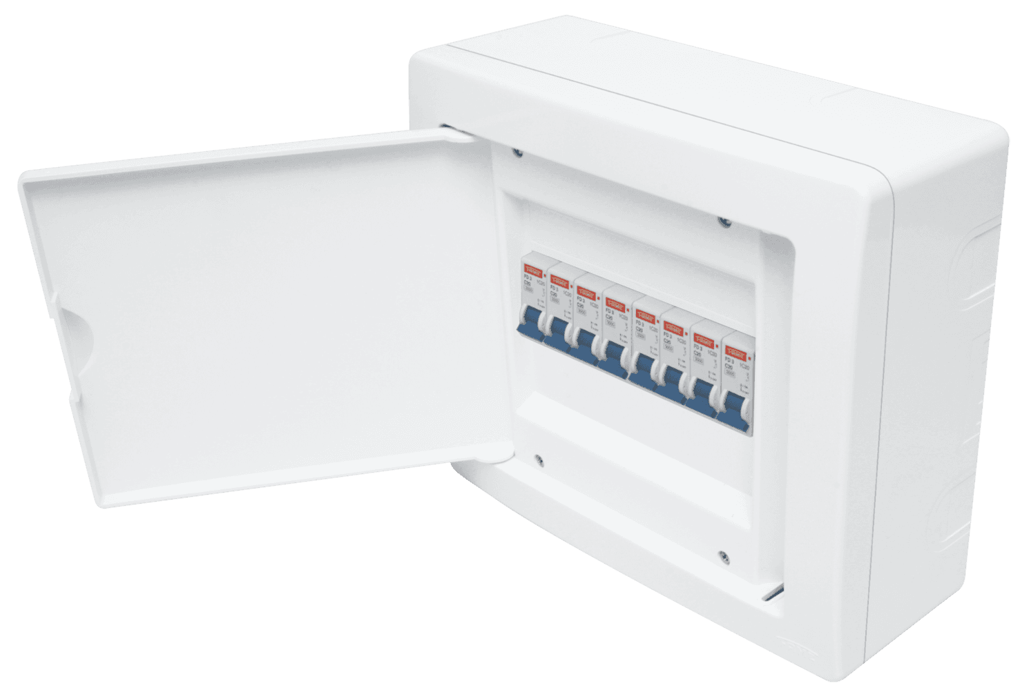 O Quadro de Distribuição de Embutir FAME possui acabamento brilhante, permitindo a combinação perfeita também com as linhas de material elétrico de embutir, proporcionando uma instalação elétrica integrada, sem o inconveniente de precisar escondê-lo atrás da porta.