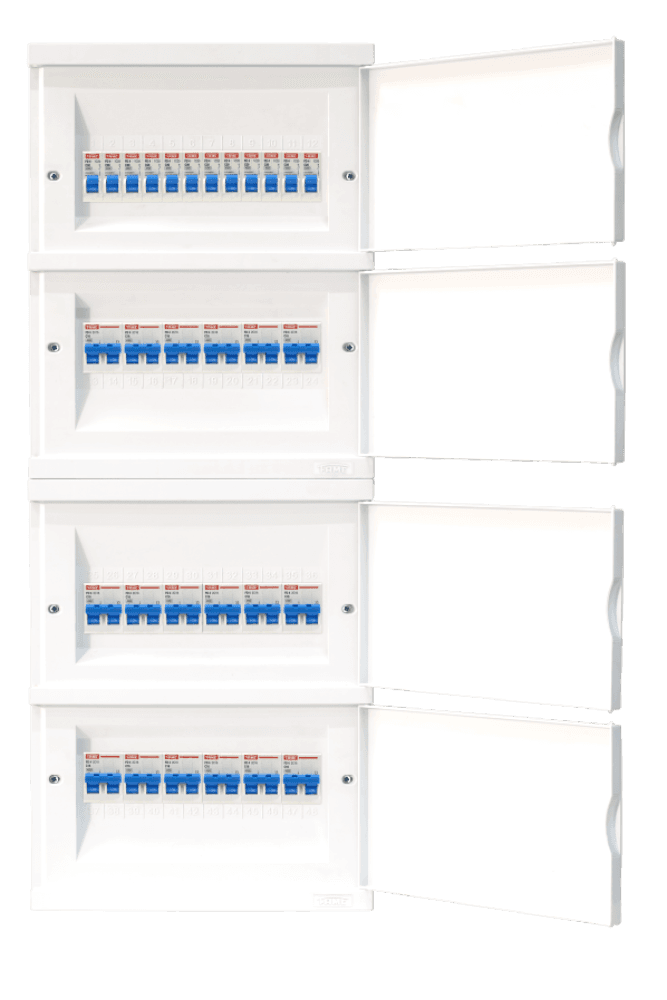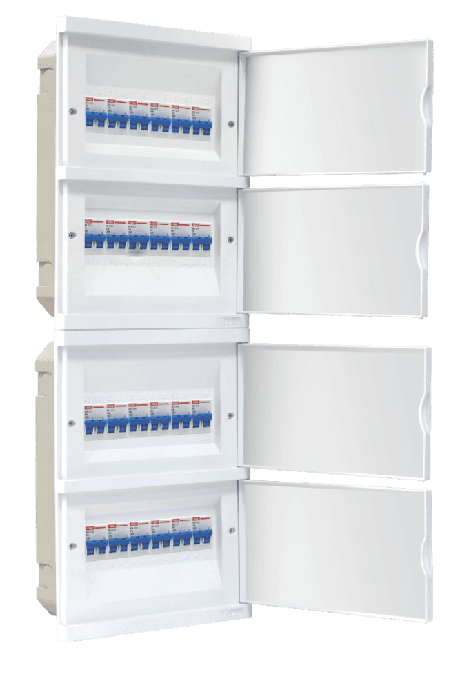 O Quadro de Distribuição de Embutir FAME possui acabamento brilhante, permitindo a combinação perfeita também com as linhas de material elétrico de embutir, proporcionando uma instalação elétrica integrada, sem o inconveniente de precisar escondê-lo atrás da porta.